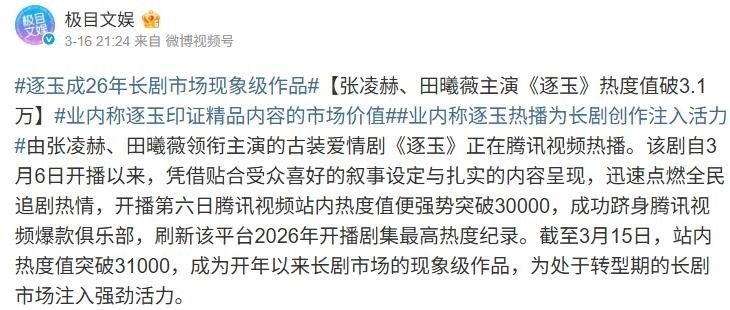 随着剧情持续推进,我们有理由相信,《逐玉》还将不断刷新纪录、拓展边界。