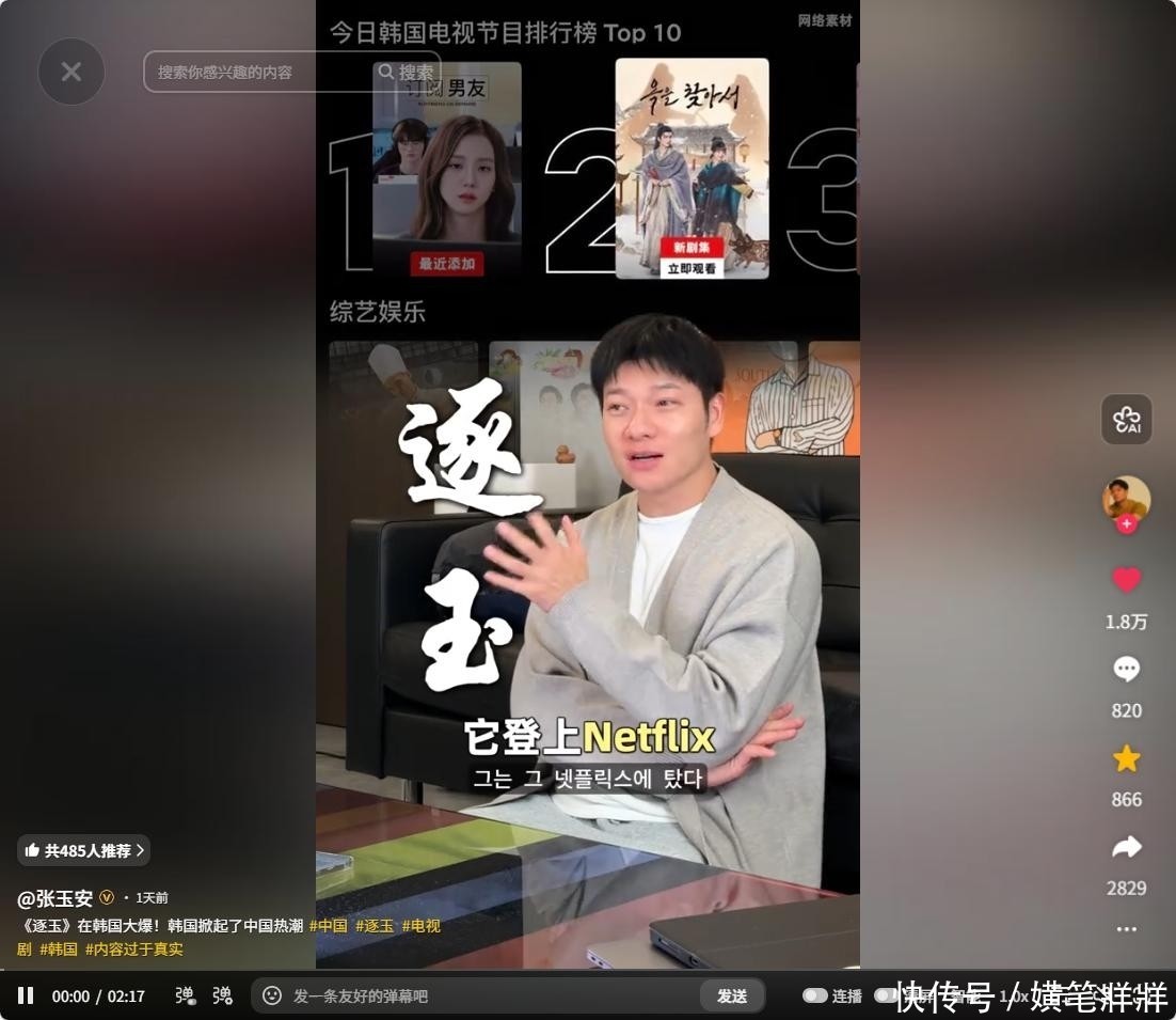 《逐玉》强势空降Netflix韩国区榜单第二位,力压多部本土热门剧集。